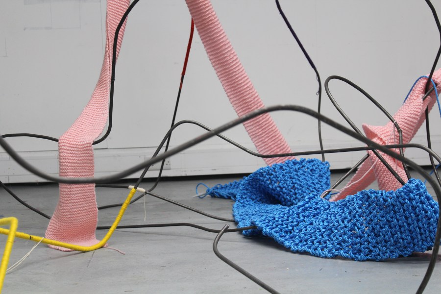 Collaboration with Samantha Henning Untitled, 2018. Collaboration with Samantha Henning. Metal rod, acrylic yarn, polypropylene rope, string.